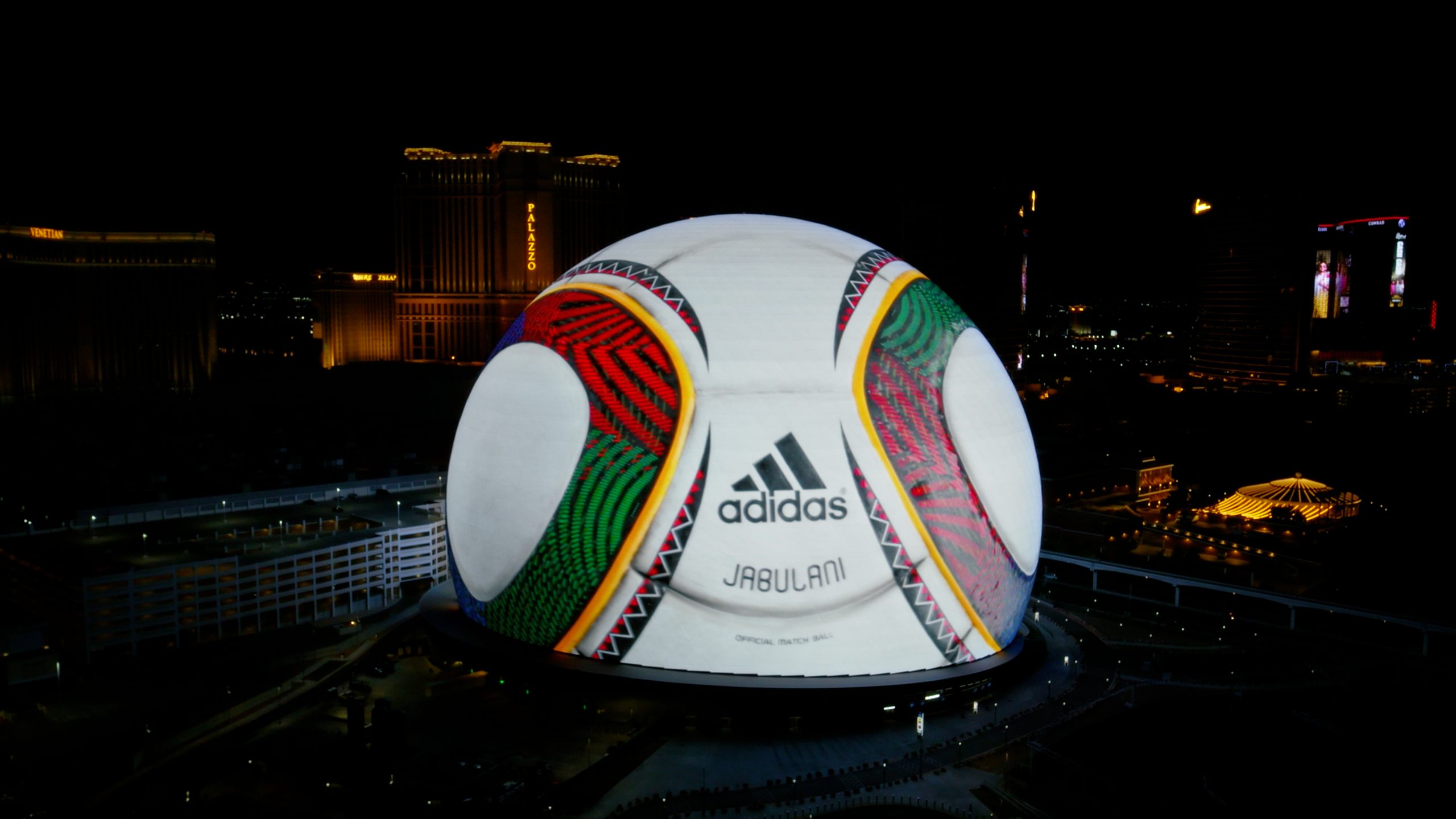 À quelques mois du coup d’envoi de la Coupe du monde 2026, adidas, partenaire technique et historique de la compétition, a lancé les hostilités avec une projection exceptionnelle sur l’Exosphere, la façade de la Sphère de Las Vegas.