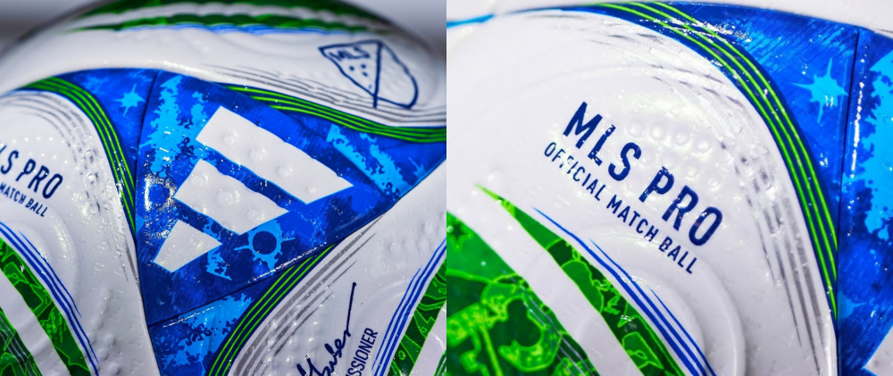 Et c’est en s’inspirant des couleurs de l’un des premiers logos de la Major League Soccer qu’adidas a imaginé son nouveau cuir. Un mélange de vert et de bleu, qui nous rappelle la fin des années 90.