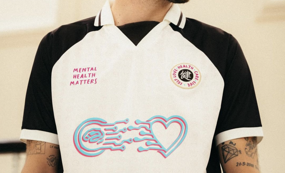 Au coeur de ce projet, il y a donc un maillot. Une tunique blanche, orné du logo « Self Love. Health. Care. Live. », qui n’est autre que la devise de l’association Mental Health Matters. Au centre du maillot, la représentation d’un cœur qui fusionne avec le cerveau, histoire de rappeler qu’un peu d’amour dans le football ne fait jamais de mal.
