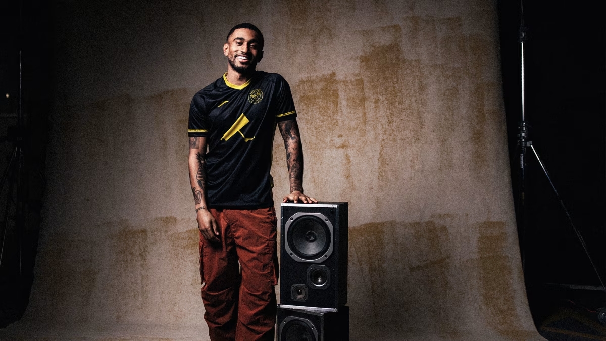 Le maillot spécial arbore les couleurs jaunes et noires de la pochette de l’album et reprend son emblème en sponsor. L’écusson de Brentford a également été redessiné aux couleurs du maillot. Last but not least, on retrouve sur les manches les paroles du morceau Hard To Beat : « Can you feel it ? Rocking the city ».