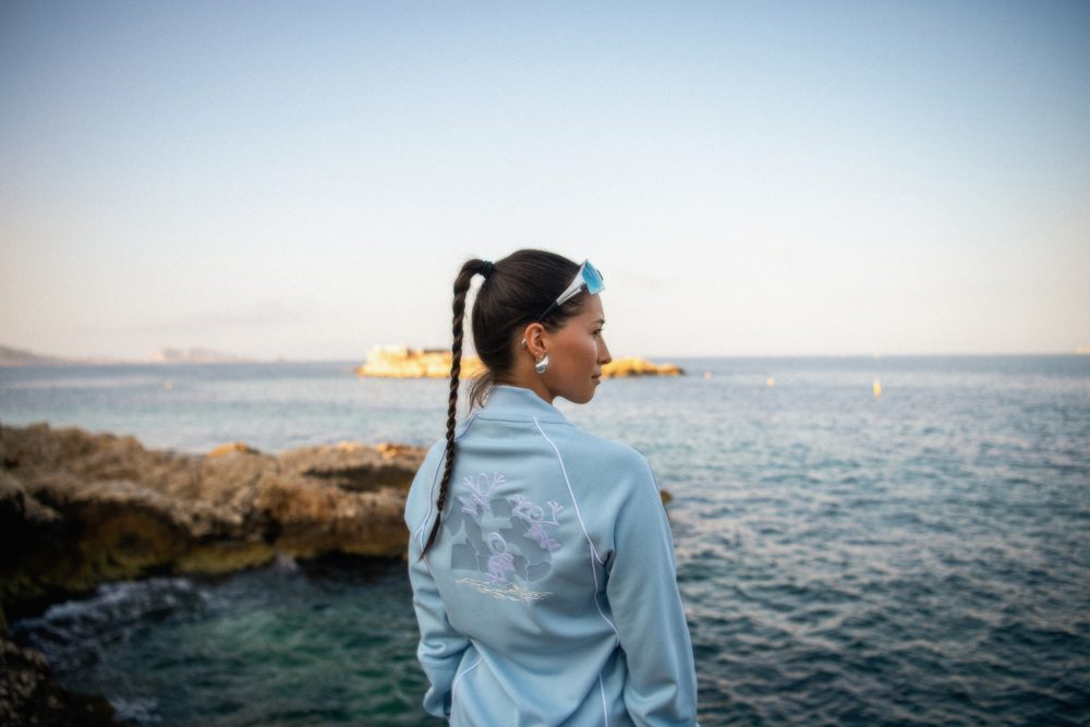 La collection pensée par Crapule 2000, à qui l’on doit notamment une fresque Zidane à Marseille, fait justement référence au bleu ciel de la cité phocéenne. Le survêt’ imaginé par l’artiste francilien Hiitcho tend lui vers le noir et rend hommage à la banlieue parisienne avec par exemple une mention 93 dans le dos.