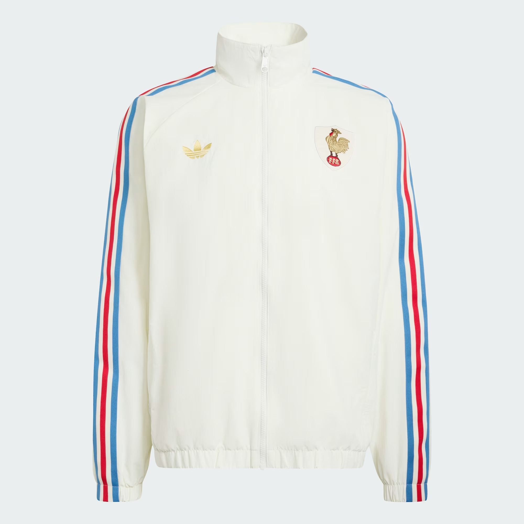 On apprécie d’autant plus le maillot qu’il s’accompagne d’une collection lifestyle particulièrement propre, parmi laquelle on retrouve une magnifique veste de survêtement blanche.