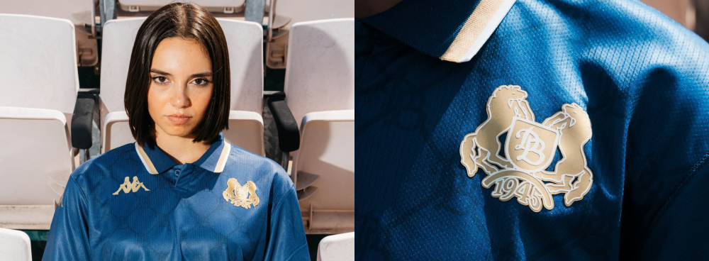 Vous l’aurez certainement remarqué en observant de plus près les photos du shooting : Kappa joue la sécurité avec un « plat du pied » parfaitement maîtrisé, en misant sur un col polo classique, relevé de touches dorées et de clins d’œil historiques.