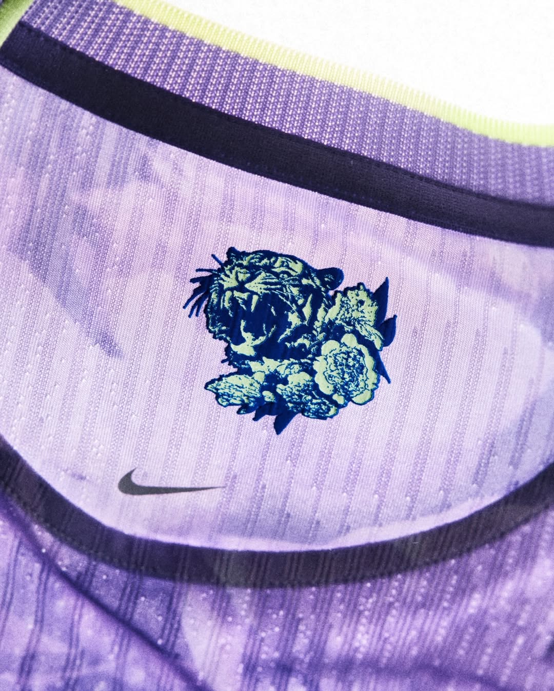 La tunique extérieure, elle, mise sur une couleur violette inédite sur un maillot de la Corée du Sud. Pour le design, l’inspiration est davantage florale qu’animale avec ce motif à fleur plutôt réussi.