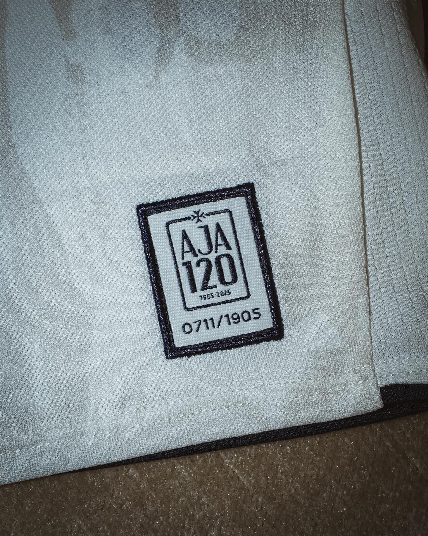 La tenue « Icônes« , elle, dans un coloris blanc cassé, vient rendre hommage au passé du club avec un discret motif graphique rappelant de grands moments de l’histoire de l’AJA.