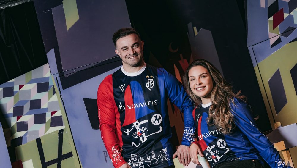 Les couleurs traditionnelles du club sont toujours bien représentées mais s’accompagnent cette année de détails retravaillés à la sauce Carnaval où l’on retrouve par exemple des motifs peints à la main en référence aux lanternes traditionnelles du carnaval de Bâle.