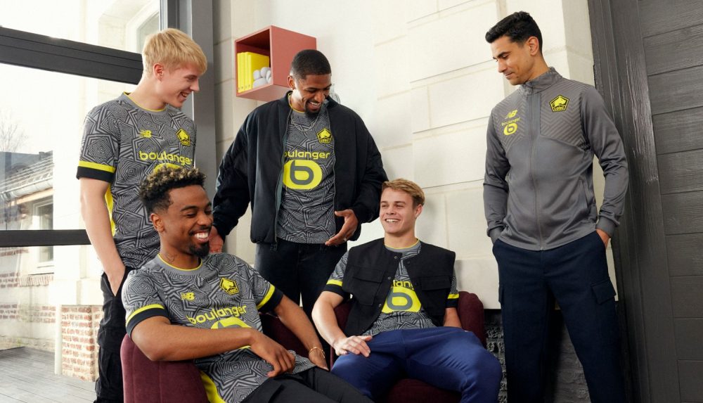 Concrètement, ça se matérialise par un maillot third gris béton et un motif qui fait référence à l’architecture du lieu. « L’écusson du club, les bandes de course et les poignets des manches arborent les couleurs jaune et noir, synonymes de la livrée des Flandres françaises » précise NB.
