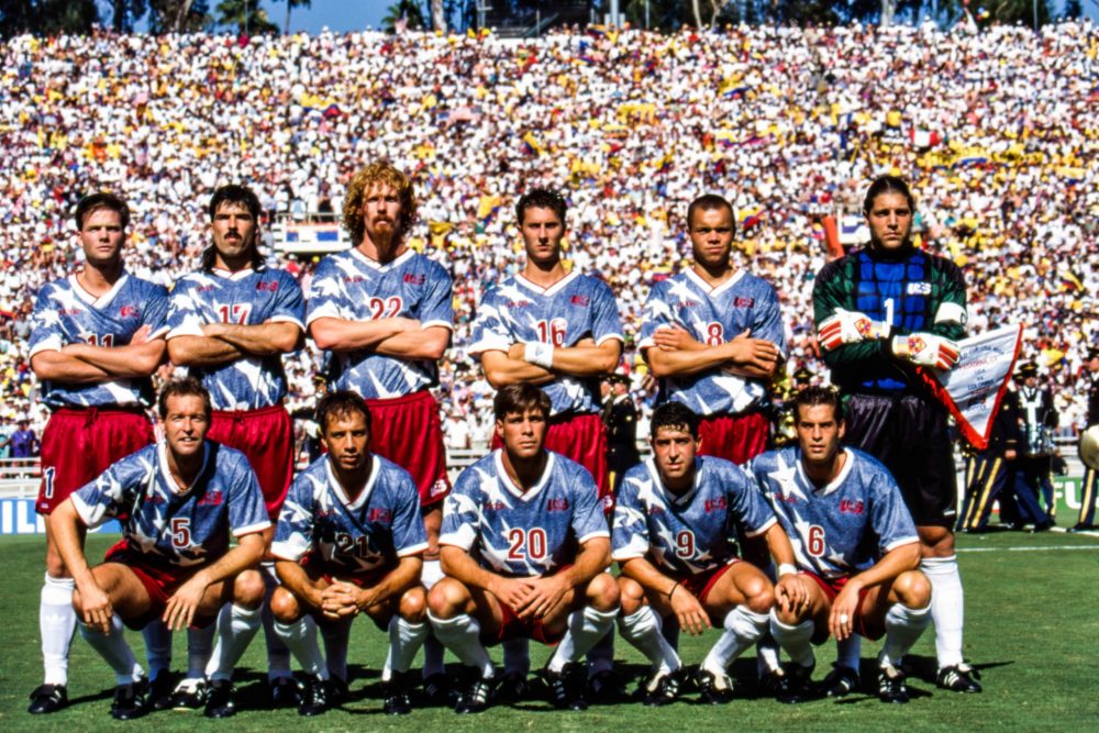 Une Coupe du monde organisée à la maison, ça se fête. Comme quand vous organisez un dîner chez vous: vous sortez votre plus belle chemise pour l’occasion. En 1994, les États-Unis ont fait la même chose. Pays hôte du Mondial, les States déboulent avec un maillot bleu gris orné des célèbres étoiles que l’on retrouve sur leur drapeau, la bannière étoilée. Et qui de mieux qu’Alexi Lalas, grand barbu aux cheveux longs et roux, pour porter ce jersey directement entré au Panthéon des plus osés jamais vus en Coupe du monde ?