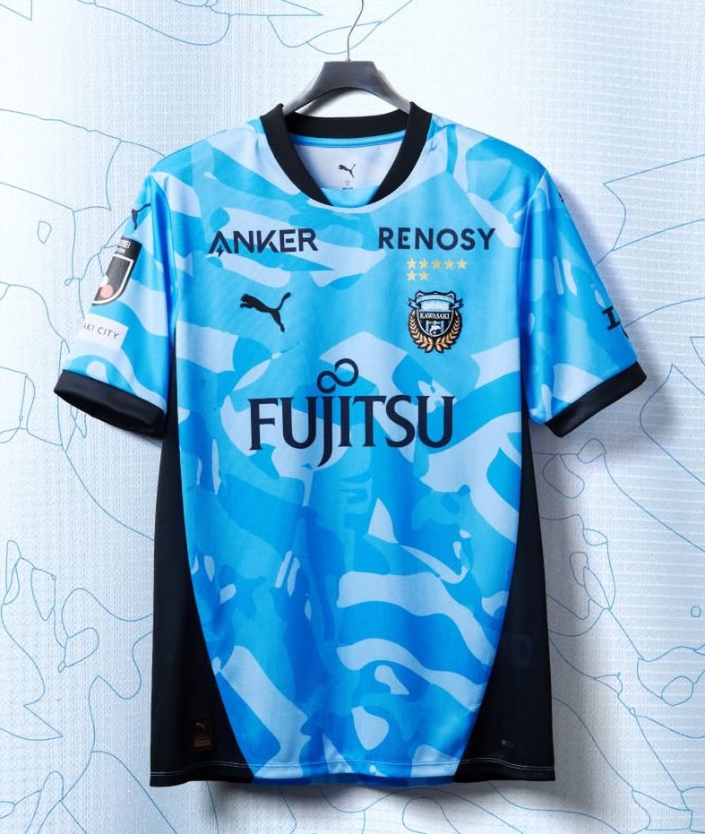 On pourrait longuement parler du joli motif camouflage bleu du Kawasaki Frontale signé PUMA. Mais comment détourner son regard des sept étoiles au-dessus de l’écusson du club. Ils auraient pu faire un effort pour les centrer…