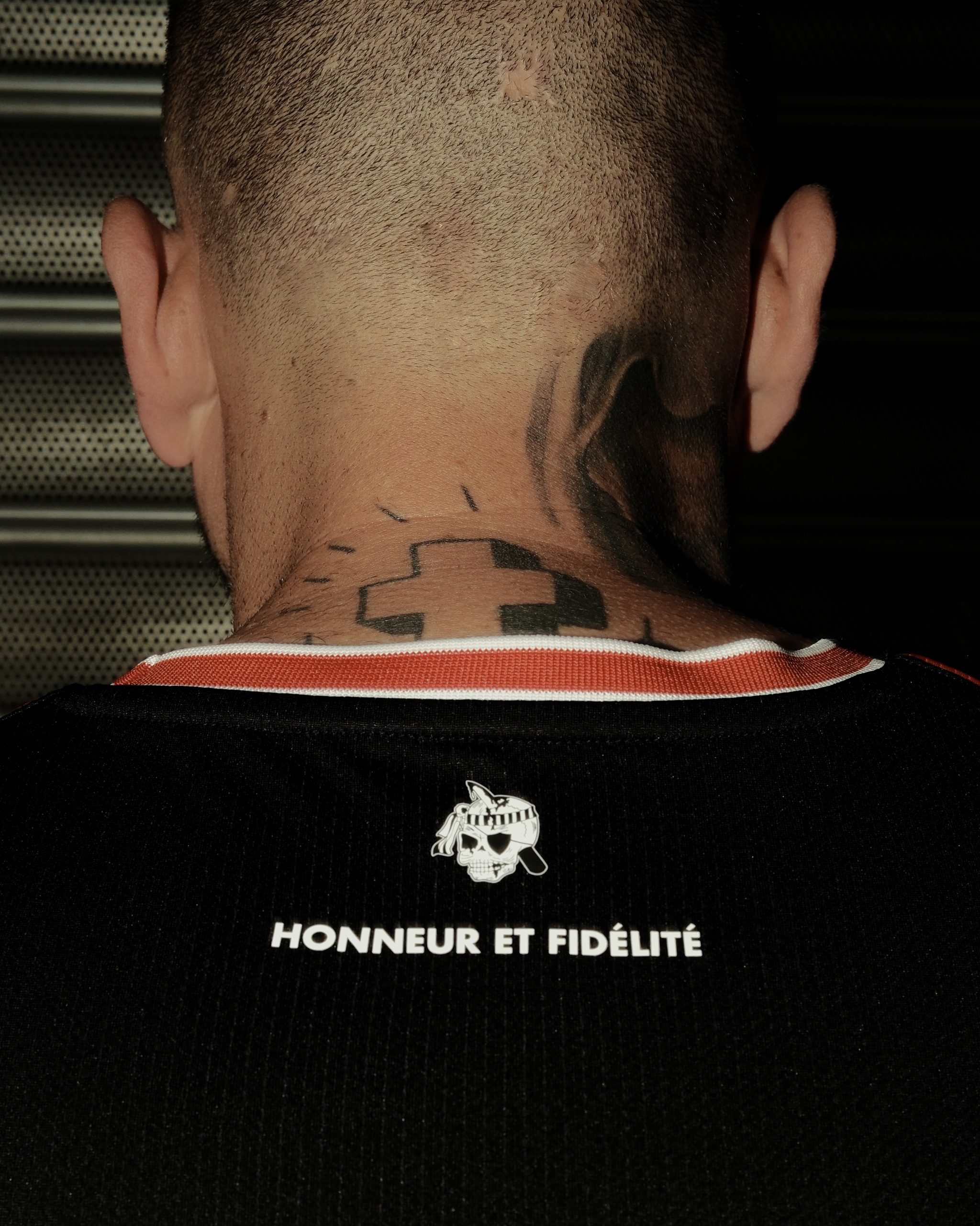 À contre-courant des éditions flashy, ce maillot opte pour un noir profond, presque solennel, ponctué de touches rouges sur le col et les manches. Une esthétique brute, directement inspirée des codes visuels de la tribune. Le blason historique du club est accompagné des dates 1985-2025, tandis que la devise “Honneur et Fidélité” apparaît au niveau du col, juste au-dessus de l’emblème des Ultras Niçois. À l’intérieur, une mention discrète rappelle les 40 ans du groupe : un clin d’œil intime à celles et ceux qui se reconnaîtront.