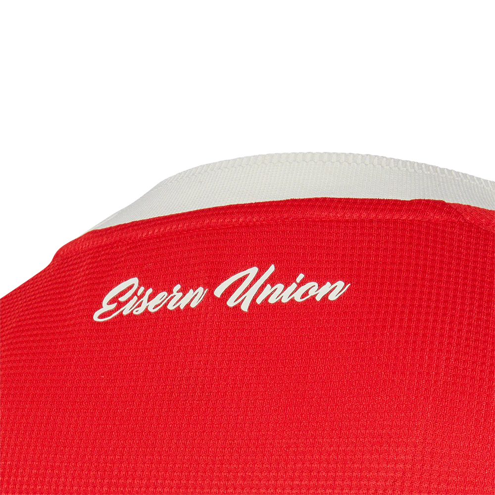 Les plus attentifs auront également remarqué un petit patch en bas du maillot, spécialement créé par les supporters en hommage aux soixante ans du club. Pour finir, on peut retrouver à l’arrière du col l’inscription « Eisern Union » (« Union de fer »), surnom du club en clin d’œil à ses racines industrielles.