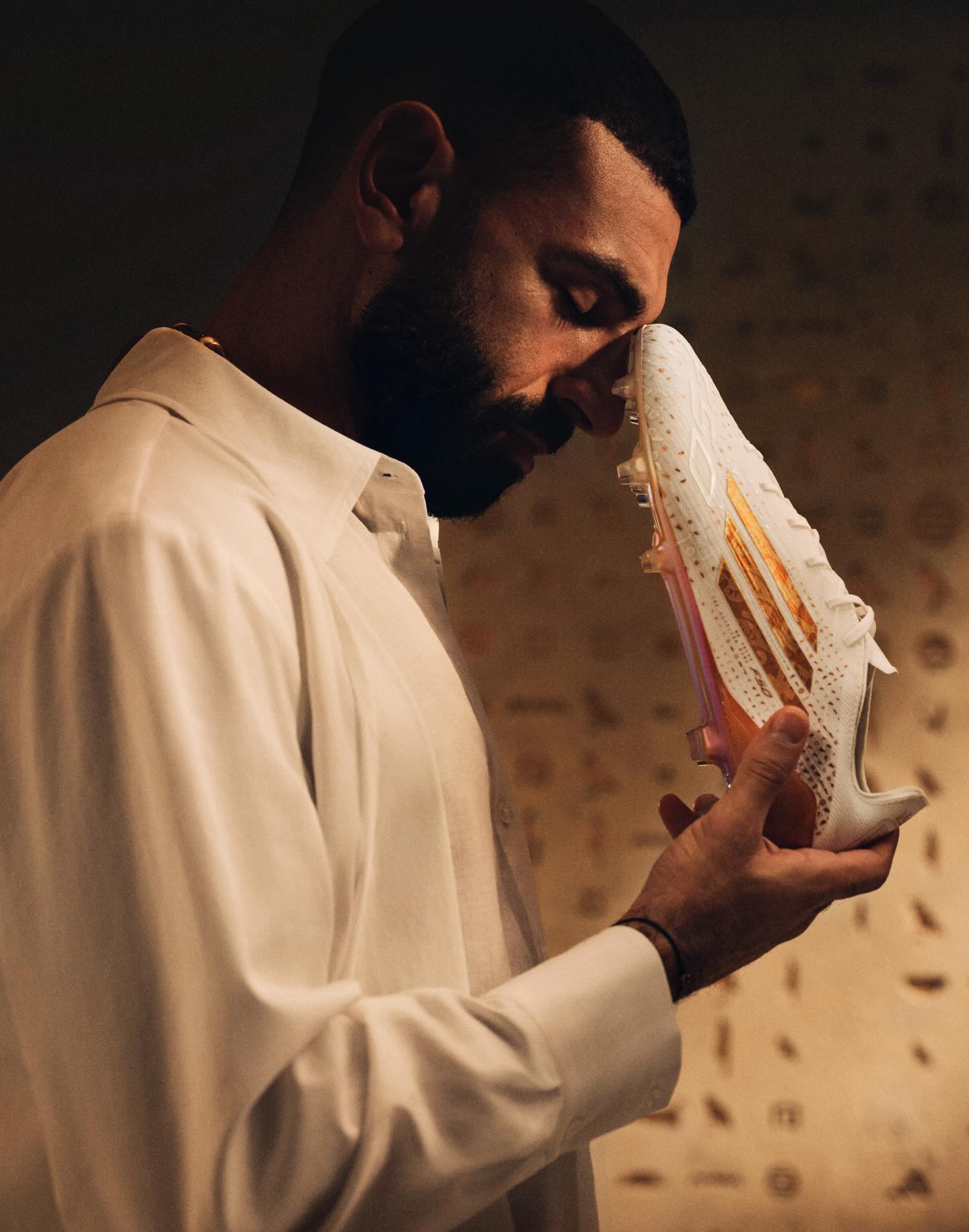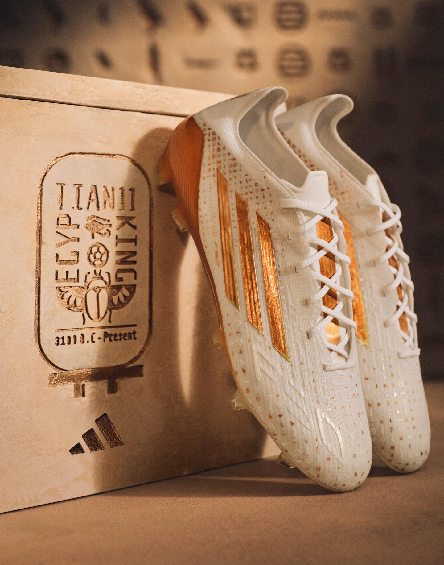 Inspirée de l’Égypte antique, cette troisième chaussure signature adidas dédiée à Mohamed Salah sera portée par l’Égyptien dès l’entrée en lice des Pharaons face au Zimbabwe, le 22 décembre.