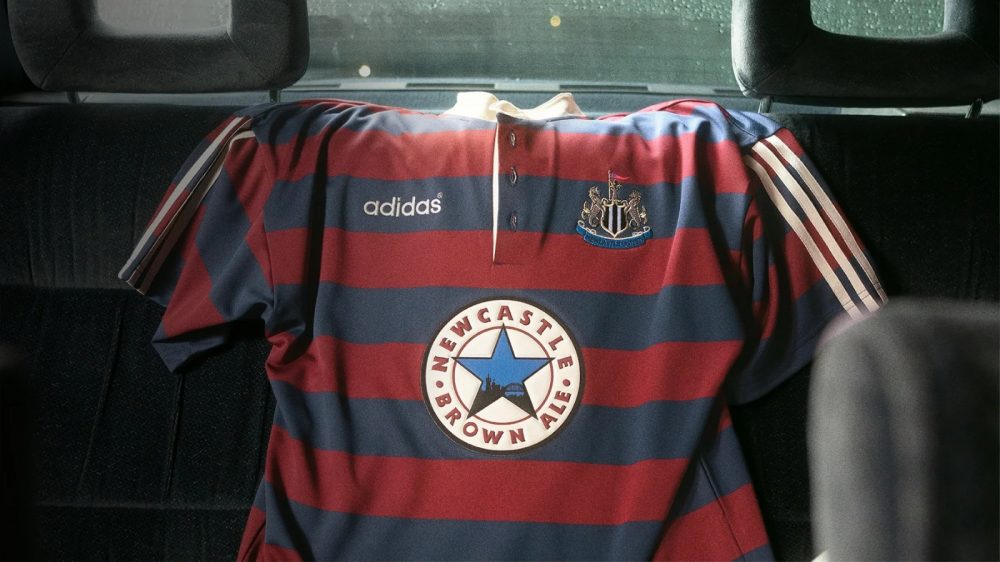 Pour l’occasion, le club a réédité trait pour trait son maillot extérieur 95-96 rouge et bleu, marquant le retour de l’iconique sponsor « Newcastle Brown Ale » à l’avant de la tunique.