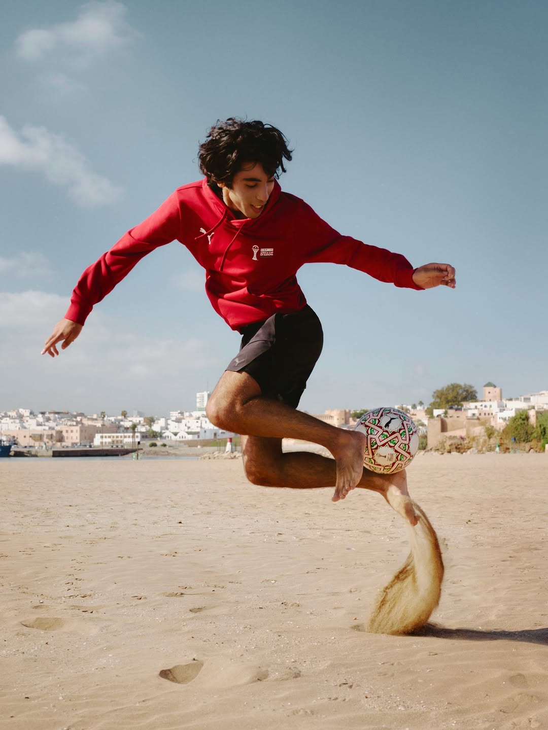 ITRI (« étoile » en amazigh) s’inspire de l’art marocain du zellij, avec un design mêlant motifs géométriques rouges et verts en hommage au Maroc, pays hôte de la compétition. Le résultat est plus que propre, et fait un joli clin d’œil au patrimoine culturel marocain.