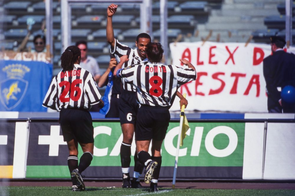 Et ce triomphe se fait donc avec une nouveauté sur son maillot : pour rendre plus visibles les numéros rouges, le club turinois choisit d’apposer, en dessous du numéro, un gros carré blanc.