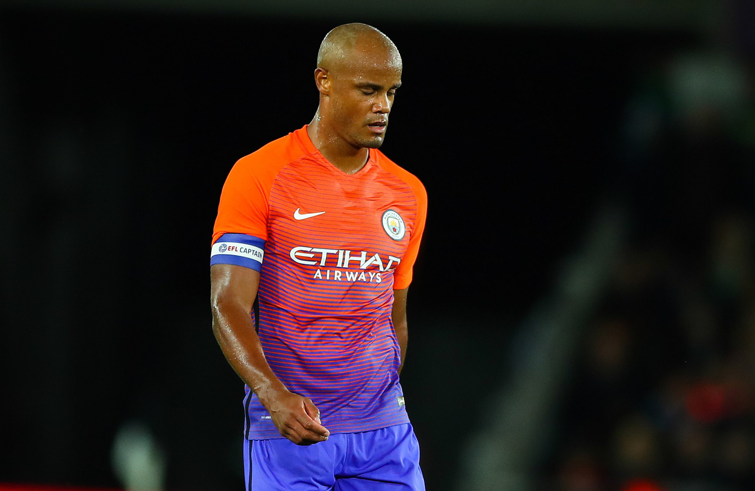 Vincent Kompany of Manchester City shows a look of dejection during the EFL Cup Third Round match between Swansea City and Manchester City played at the Liberty Stadium, Swansea on 21st September 2016 Photo : Kieran McManus / BPI / Icon Sport   - Photo by Icon Sport