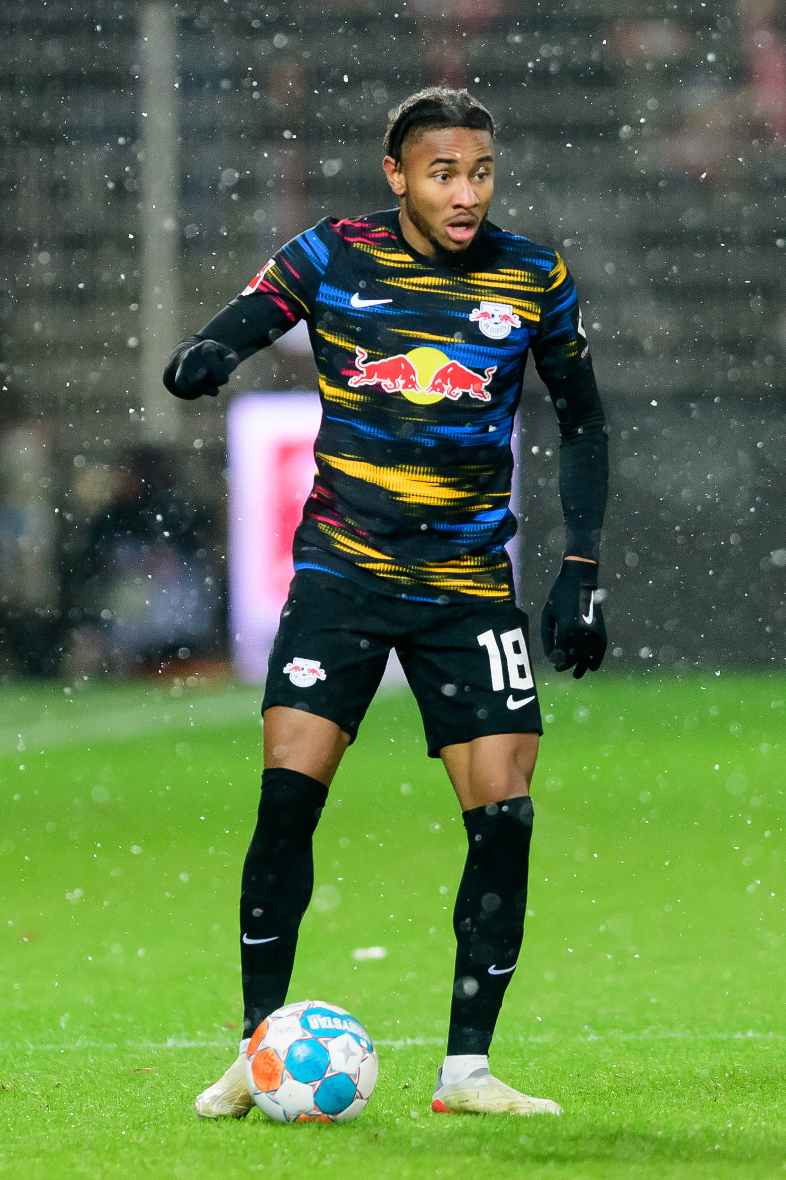 Berlin, Deutschland, 03.12.2021: Christopher Nkunku (RB Leipzig) in Aktion, am Ball, Einzelaktion waehrend des Spiels der 1. Bundesliga zwischen 1. FC Union Berlin und RB Leipzig im Stadion an der alten Foersterei am 03. Dezember 2021 in Berlin. (Foto von Nico Paetzel/DeFodi Images) DFB / DFL REGULATIONS PROHIBIT ANY USE OF PHOTOGRAPHS AS IMAGE SEQUENCES AND/OR QUASI-VIDEO. Berlin, Germany, 03.12.2021: Christopher Nkunku (RB Leipzig) controls the ball during the First Bundesliga match between 1. FC Union Berlin and RB Leipzig at Stadium an der alten Foersterei on December 3, 2021 in Berlin, Germany. (Photo by Nico Paetzel/DeFodi Images) - Photo by Icon sport   - Photo by Icon Sport