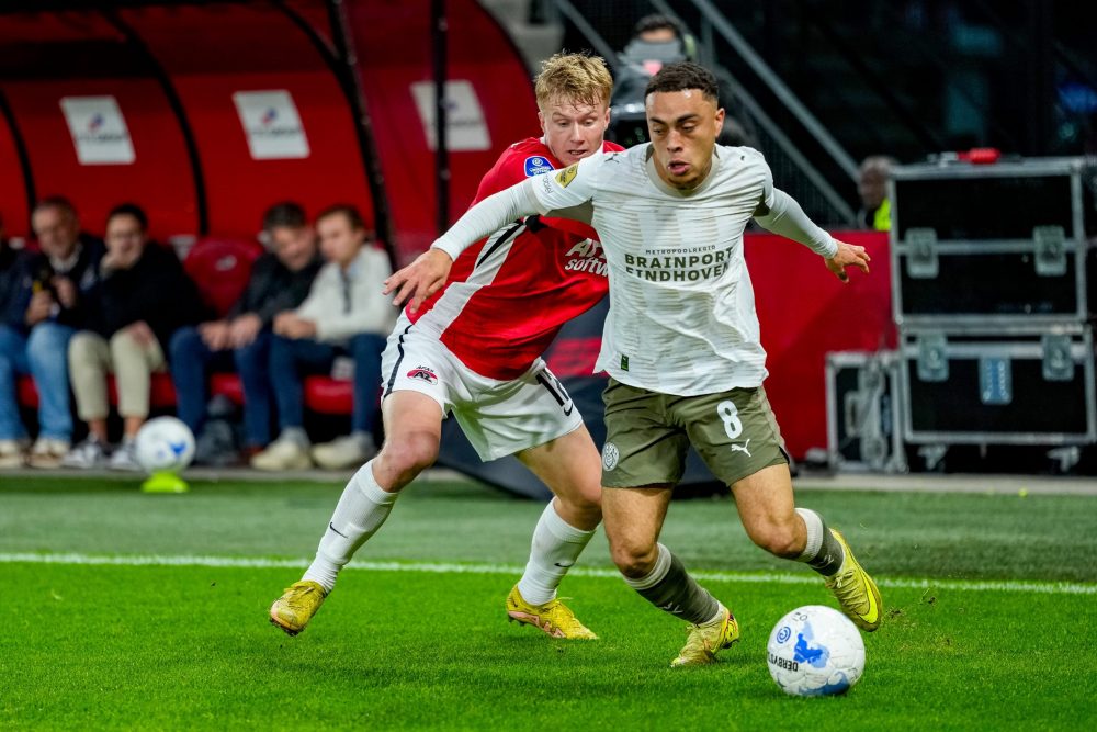 On commençait à s’habituer à voir des maillots au style épuré, mais Sergiño Dest a poussé le délire un peu plus loin. À l’occasion du déplacement à l’AZ Alkmaar dimanche dernier, le latéral droit du PSV Eindhoven a porté un maillot sur lequel ne figurait ni l’écusson du club, ni le logo de PUMA, son équipementier.