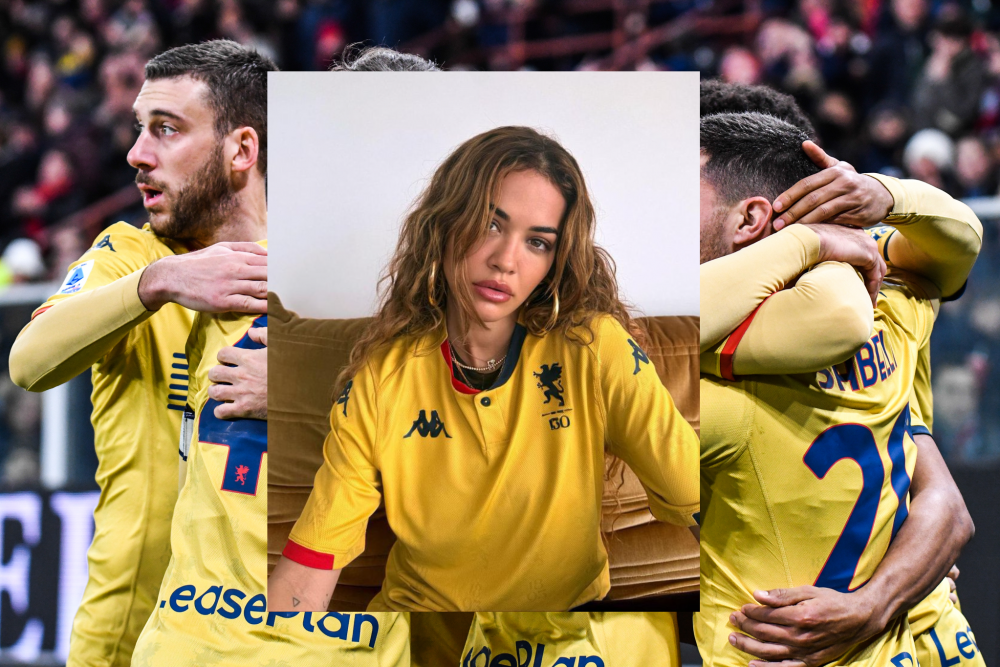 💛✨ @RitaOra in Genoa Golden shirt 🔴🔵 pic.twitter.com/cOECPAyTFn