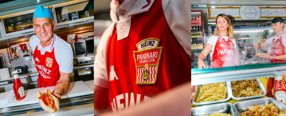 À l’aise pour rassembler les univers, la marque italienne a cette fois souhaité mettre à l’honneur les vendeurs des Paninari, qui sont chargés de rassasier les supporters les soirs de matchs en Italie. Le tout, à travers une collaboration inédite avec Heinz.